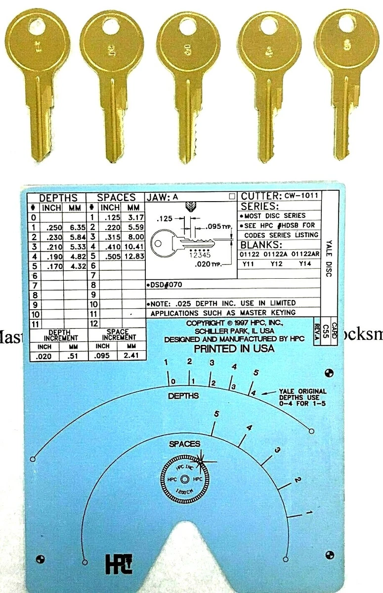 Yale Y14 01122ar Space And Depth Keys 5 Cut Blanks Hpc C55 Code Card Ebay